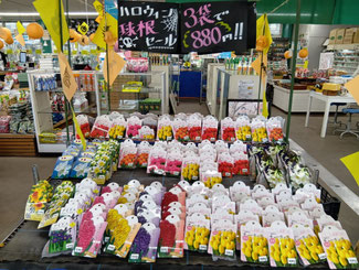 土日の園芸教室、13日と20日の切り花の叩き売り、店内には390円のお得な商品が盛りだくさん!