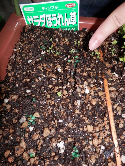 ダーサラ(サラダほうれん草)はまだ芽が出てないみたいカボ。。。