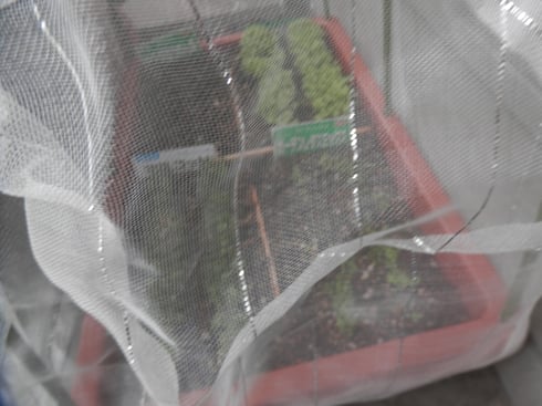 4日目。。。もう防虫網ごしになにやら見えちょる~。