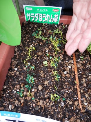 一番芽がでるのがゆっくりだった、末っ子のダーサラ(サラダほうれん草※上画像:右)は昨日より葉をカボッと伸ばしてきて、がんばっちょるぞ~!