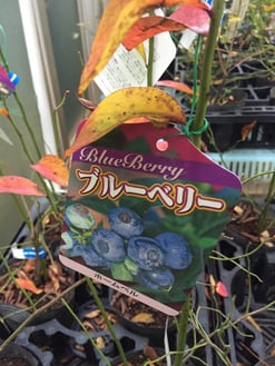 苗木の品種の確認は、苗木についてるフダで分かります。「ホームベル」や「サンシャインブルー」などがあります。ご不明な時はスタッフまでお気軽にお声掛けください。