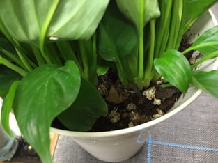 買った時に、鉢の中に肥料の粒が入っています。一か月程でなくなるので、追加してあげましょう。元気な緑色を保つことができます。