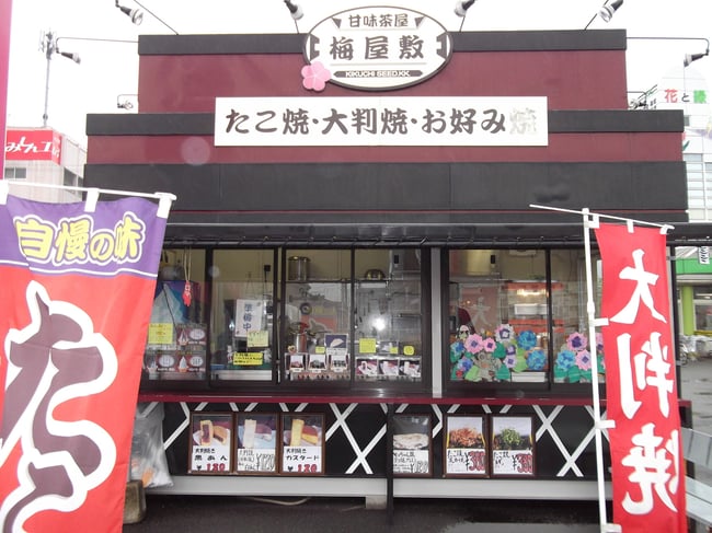 キクチ店舗前にたこ焼きと大判焼きのお店、梅屋敷があります。