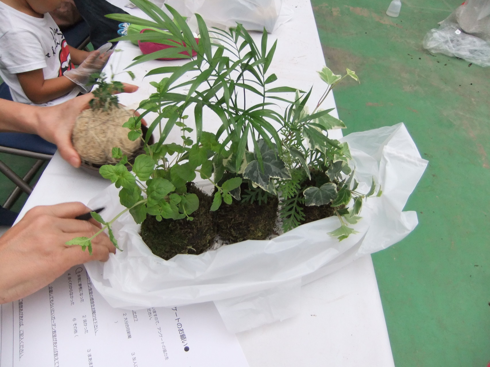 教室ではスタッフ白石とみんなで集めた苔を使ってミニ観葉の苔玉を作りました。室内に飾っても素敵なインテリアとして映えると、参加者も大満足でした。