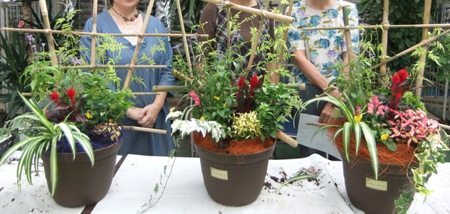 スタッフの吉賀による手づくりトレリスの寄せ植え講座では、竹を使ったトレリスの作り方と寄せ植えのポイントを紹介。立体的な寄せ植えが楽しめるトレリスの手づくりは初めて!という参加者も多く、ご家庭で植物を楽しむうえで、ヒントになったようです。