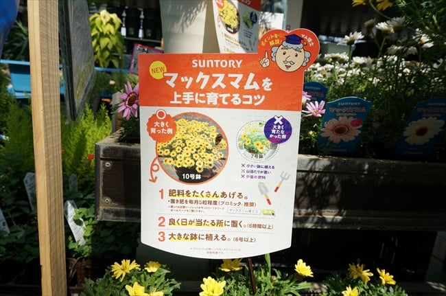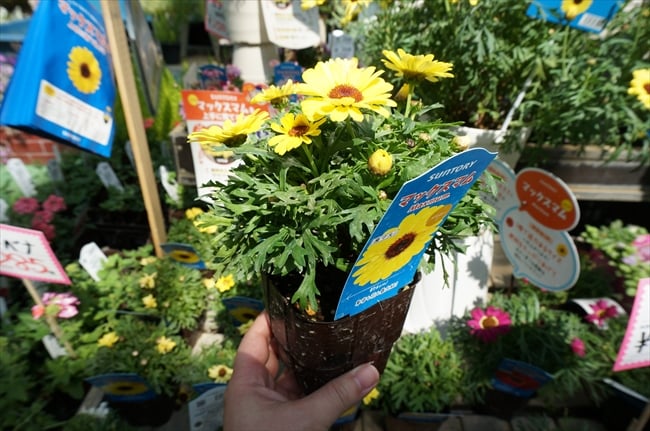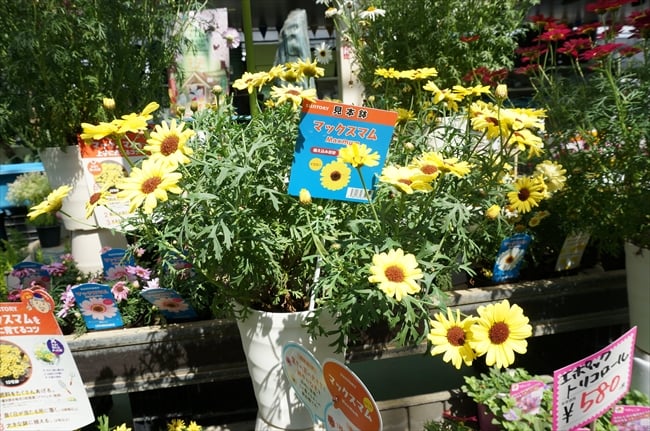 キクチ種苗の店頭でも、見本鉢のマックスマムがすくすく育っています♪