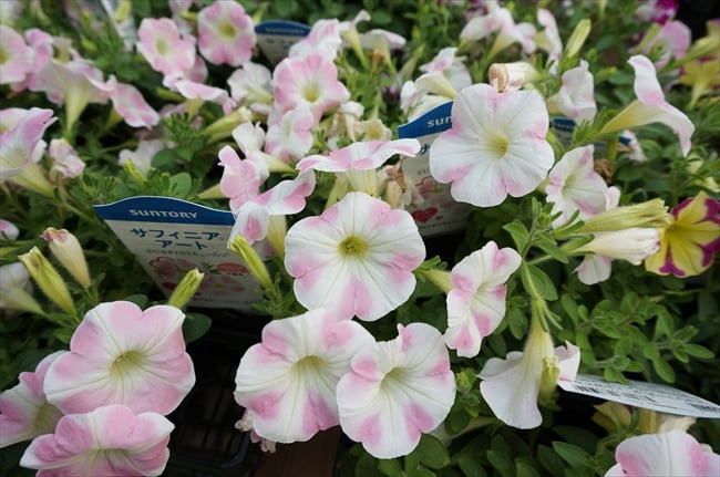 さて、春夏のガーデニングに!大きく色鮮やかで、ボリューム感を楽しめるお花の苗をご紹介します。サフィニアとマックスマムです。どちらも初心者の方でも育てやすいのでオススメですよ。