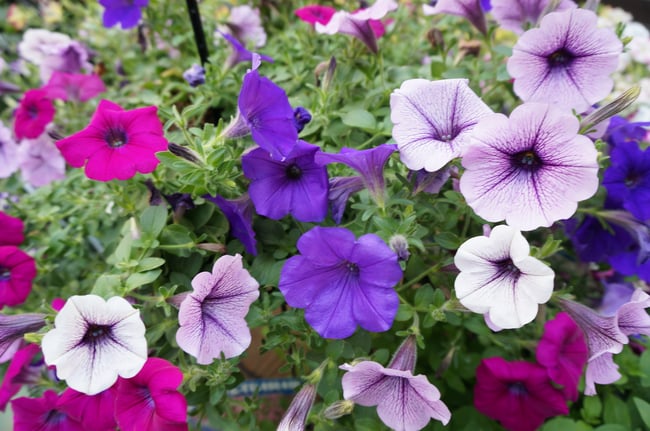サフィニア は、その花の華麗さ・美しさで、すっかり春夏のガーデニングの定番人気商品です。乾かないようにお水をしっかり与えていれば、熱さには比較的強い品種なので初心者にも育てやすいですよ。ラインナップも豊富、様々な種類のお花があります。たとえば3種の花を一つの鉢に植える楽しみ方もあります。
